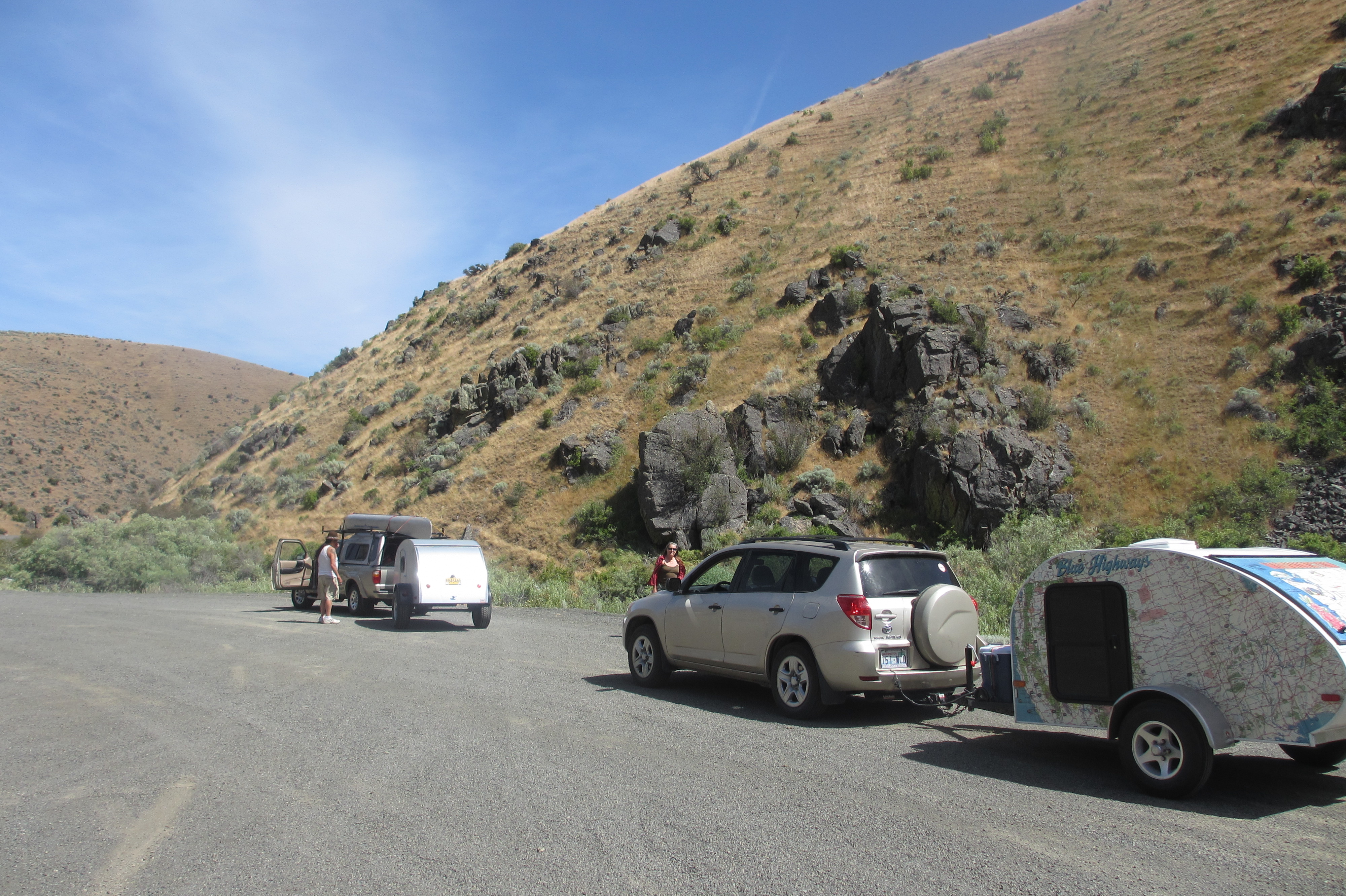 Hell’s Canyon was next. Often we would say to each other, “I don’t know if I have another wow in me”. The Canyon was stupendous. Idaho power has a beautiful campground, right near the river and wonderful amenities. This may sound weird but I judge campgrounds by their toilets, if the seats are secure and not loose and has a healthy flush the campground is usually above average. On this trip I noticed commodes had ‘turbo flush’. They could handle the load. Also before sitting make sure there is paper, in these hard economic times campgrounds and visitor centers make cuts.